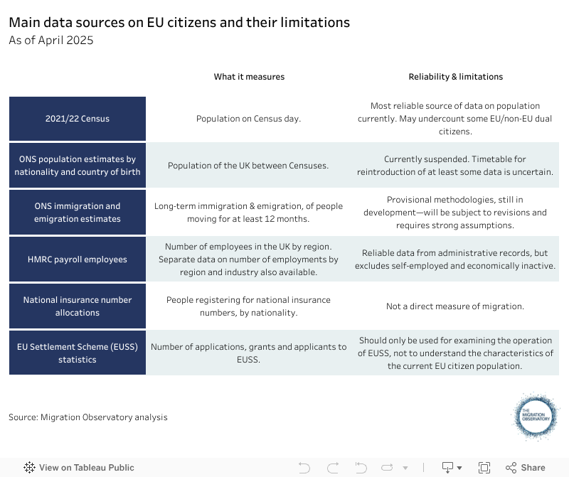 More… - Some of the main official migration statistics have a history of understating EU migration, although the much more accurate Census data has brought some relief for the time being. Other data sources should be treated with caution, such as the experimental immigration and net migration estimates.